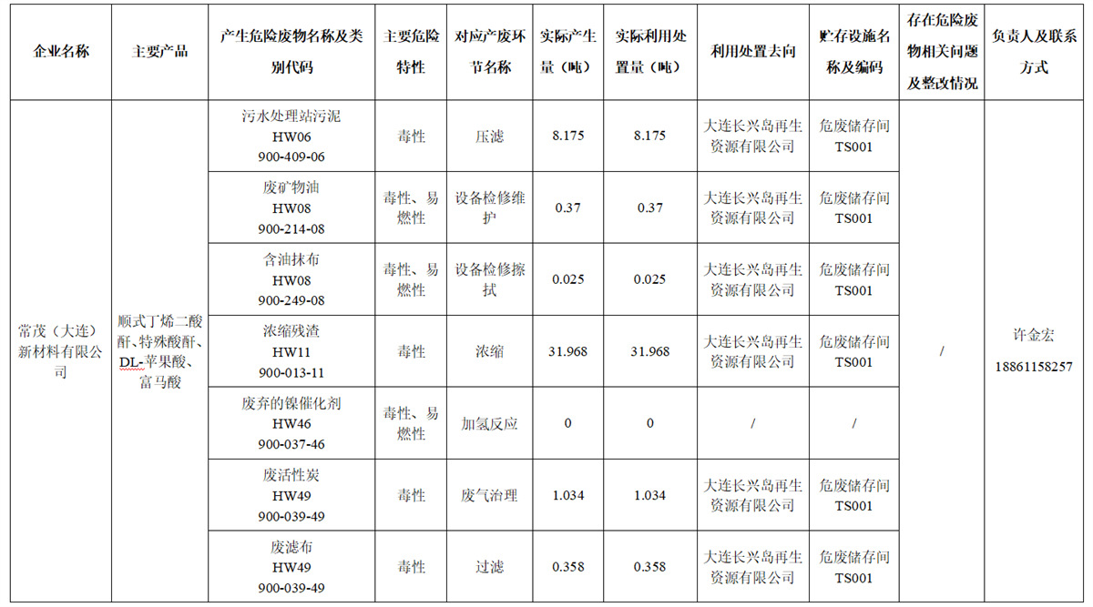 常茂(大連)危險廢物污染防治責任信息公開(2025年7月-9月)