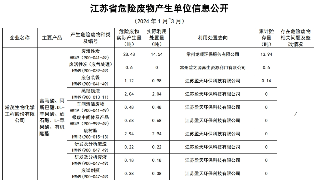 公司2024年一季度危廢信息公開(kāi)