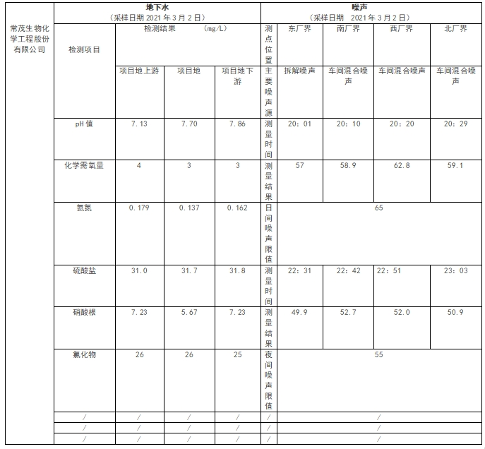 2021年企業地下水及噪聲自行監測監測結果信息公開